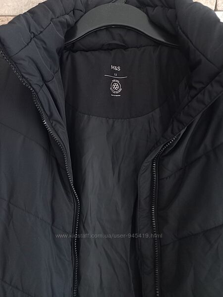 Стеганная зимняя куртка бренда M&S. Высокий воротник. Есть капюшон, который прячется в воротник. Два передних кармана на молнии. Размер M. Состояние новой, без дефектов.Состав: 100% - полиэстер.