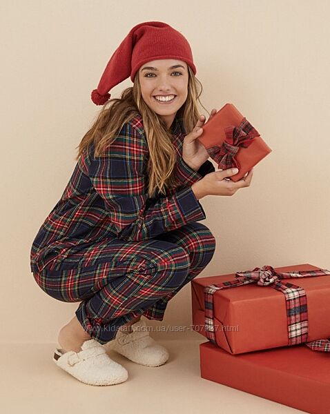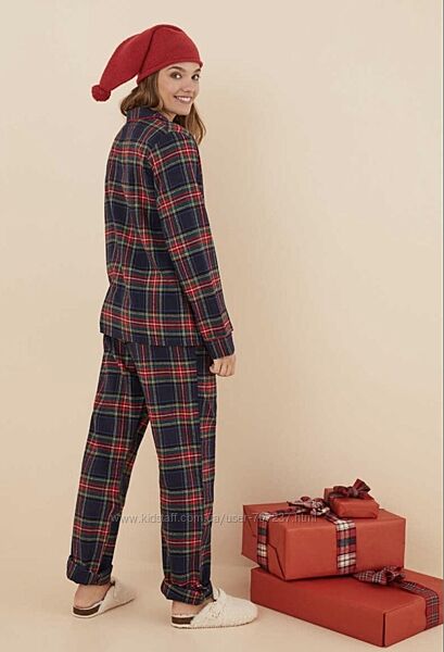 Піжама women´secret у розмірі М, зі 100% бавовни, фланель, довгі рукави та довгі штани, з клетчатим принтом (синьо-зелено-червоний).- Топ із сорочковим коміром, оздобленням на лацкані та ґудзиками, покритими тією самою тканиною.