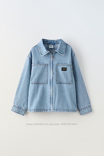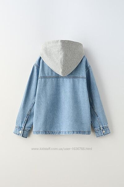 Джинсова сорочка куртка від Zara Куртка на блискавці, має 2 накладні кишені та трикотажний каптур, що легко знімається.В наявності розмір