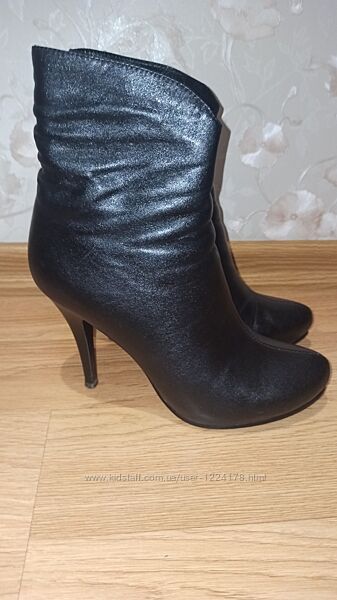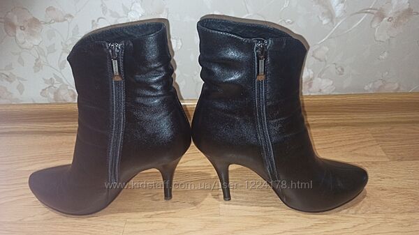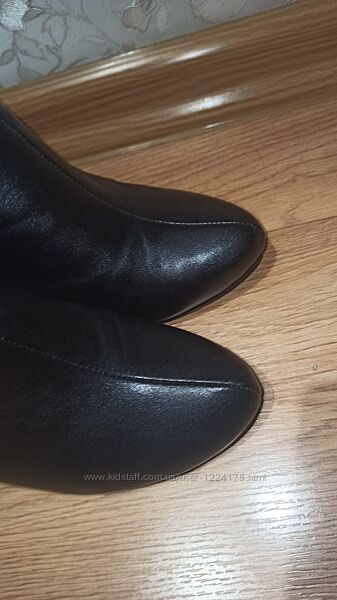 Жіночі демісезонні чоботи з натуральної шкіри. Шкіра якісна, м´яка. Стан гарний. Носочки без нюансів, підошва в гарному стані, замочки справні, набойки металеві. Розмір 36, устілка 23 см, висота каблука 9 см.