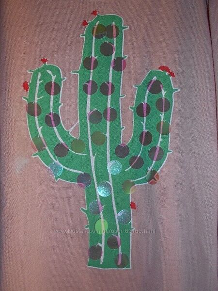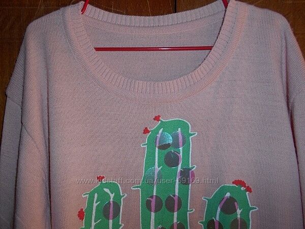 1. Джемпер "Кактус", р. 42-46Персикового цвета джемпер вязаный из тонкого трикотажа, с принтом кактуса и паетками