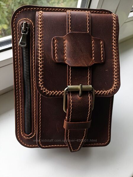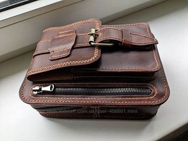 РУЧНА РОБОТА під замовлення.Сумка-барсетка зручних розмірів можна носити, як на плечовому ремені, так і на поясі (є 2 підвіси). Усередині зручно розмістяться всі необхідні повсякденні речі – ключі, паспорт/водійські права/військовий квіток, гаманець, мобілка. Дуже якісний аксесуар ручної роботи, повністю з натуральної турецької шкіри CRAZY HORSE MAX 1,5мм, ключовою особливістю якої є її вінтажний вигляд - в процесі експлуатації виробу шкіра стає світлішою в місцях вигинів і заломів. Матеріал: натуральна шкіра; колір – цегляна; Структура: основне відділення на блискавці + внутрішня кишеня, додаткове відділення 1 на блискавці, додаткове відділення 2 на ремінці. Розміри: 19,7х14,5х5,7см. Оригінальний чоловічий подарунок.
