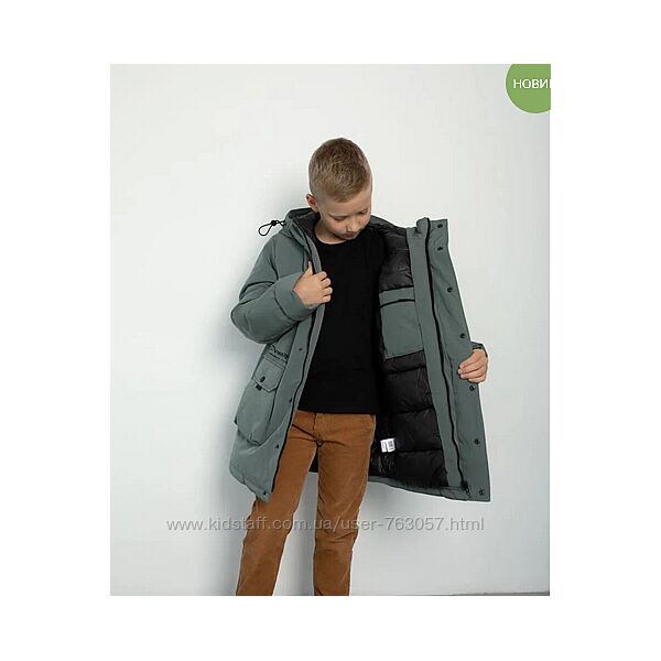 Кольори: чорний-128, 134, 140, 146, 152, 158см, оливковий-146, 152, 158, 164см, тютюновий-152, 158см
