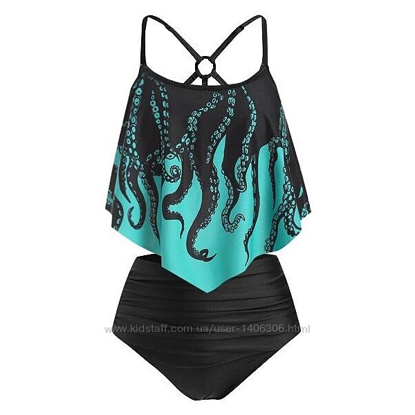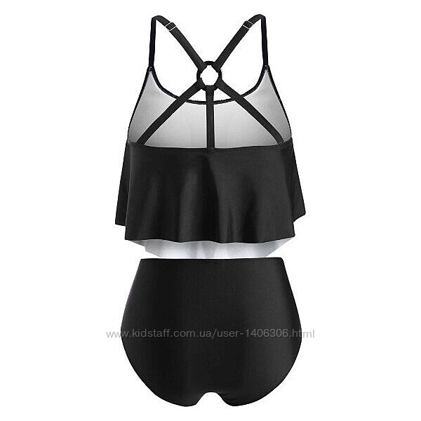 Подробное описание: Женский купальник с принтом топ с воланом, высокие плавки