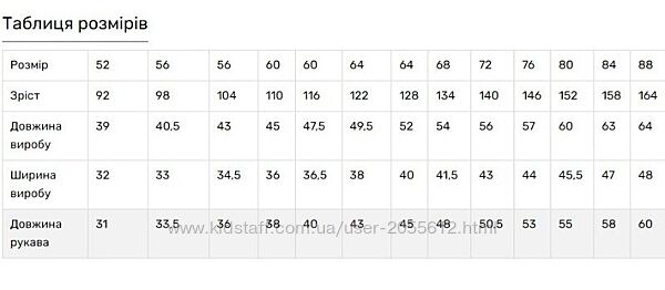 Розміри: 104, 110, 116, 122, 128, 134, 140, 146, 152, 158, 164