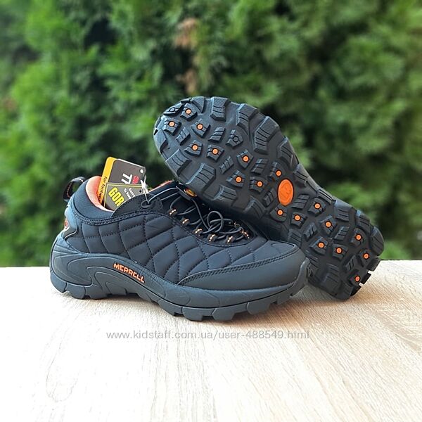 Подробное описание: Зимові чоловічі черевики Merrell Ice Cup Moc чорні з помаранчевим
