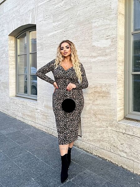 Подробное описание: Жіноча сукня облягаюча міді базова з довгим рукавом трикотажна