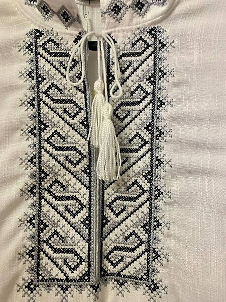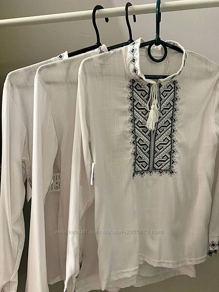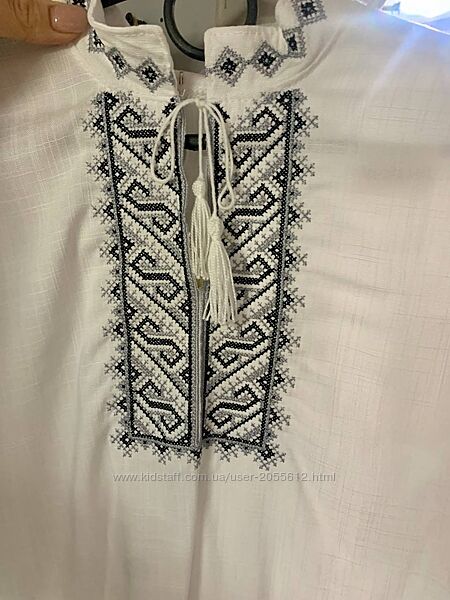 Подробное описание: Біла вишиванка для хлопчика з чорно-сірою вишивкою