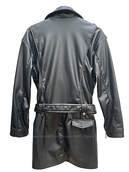 Пояс із того ж матеріалу з металевою пряжкою.