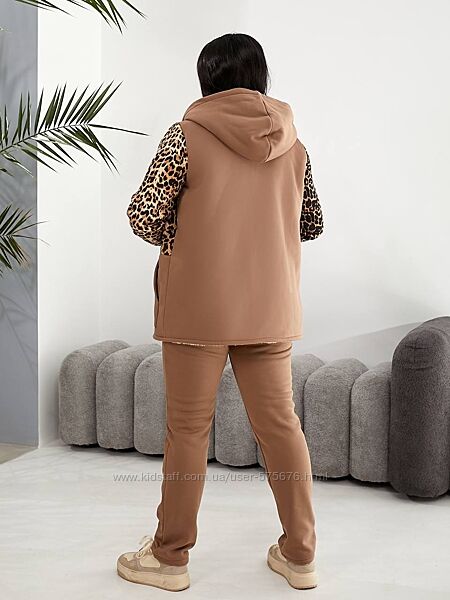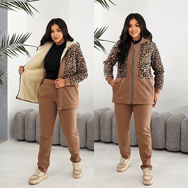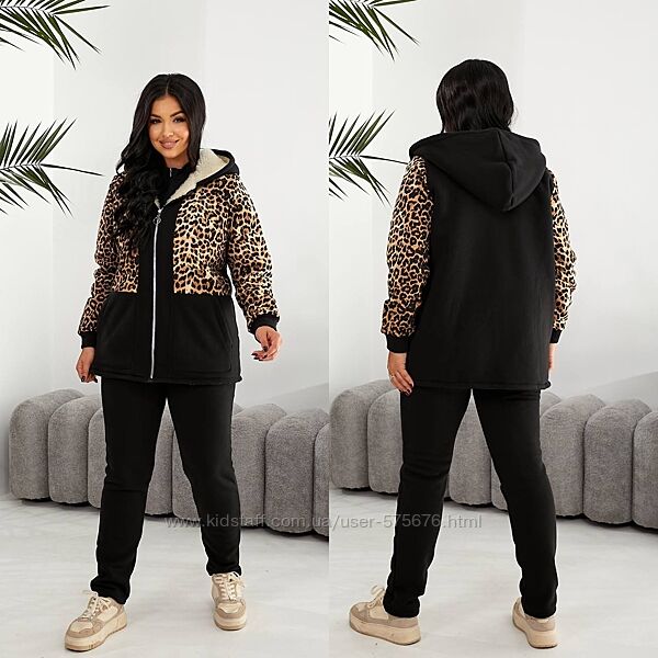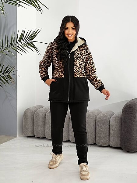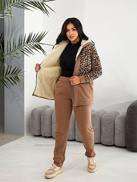 Подробное описание: р.48 до 62р. Теплий костюм лео тринитка начіс та штучна овчина