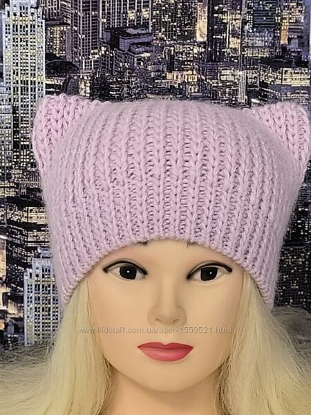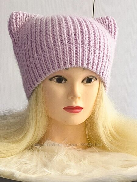 Подробное описание: Шапка з вухами колір бузковий, світло сірий. піон