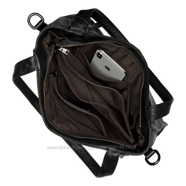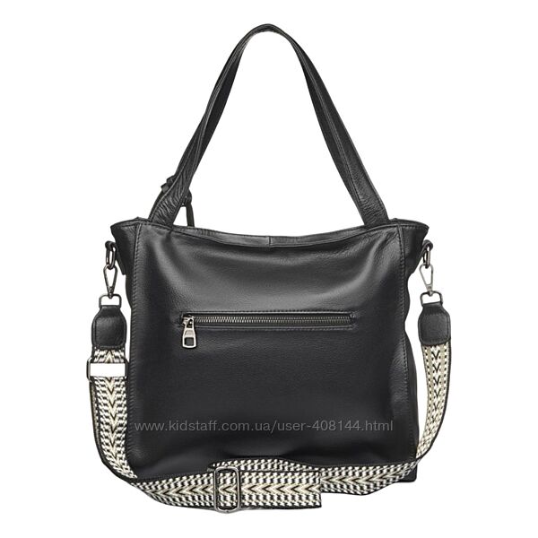 Сумка виготовлена із натуральної високоякісної шкіри. Усередині ділиться на дві частини, між ними кишеню на блискавці. Усередині три кишеньки, одна з них на блискавці. Зовні сумки на тильній стороні є кишеня на блискавці.