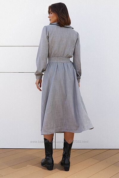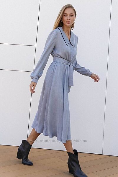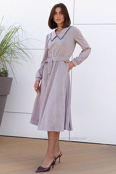 Подробное описание: Жіноча сукня міді з поясом з коміром з поясом класична костюмка