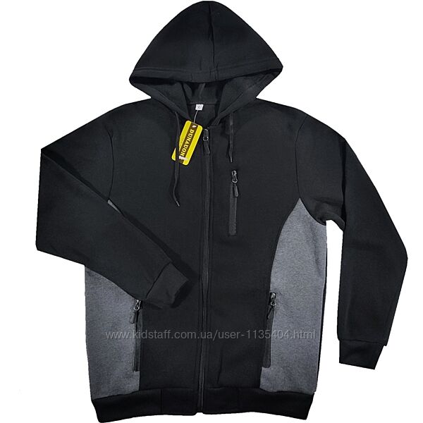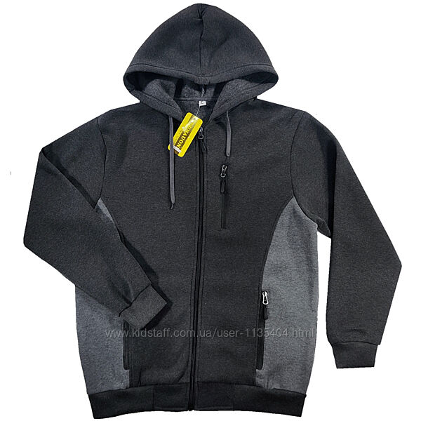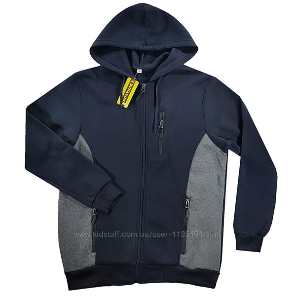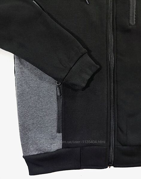Толстовка утеплена на флісі для чоловіків. Тепла зимова модель. Оригінальний модний фасон. Гарна якість трикотажу. Куртка на блискавці з капюшоном. Кишені на блискавках. Знизу гумка манжет. Такий фасон толстовок незмінно популярний у чоловіків. Добре виглядатиме з джинсами та спортивними штанами, які можна вибрати в нашому магазині
