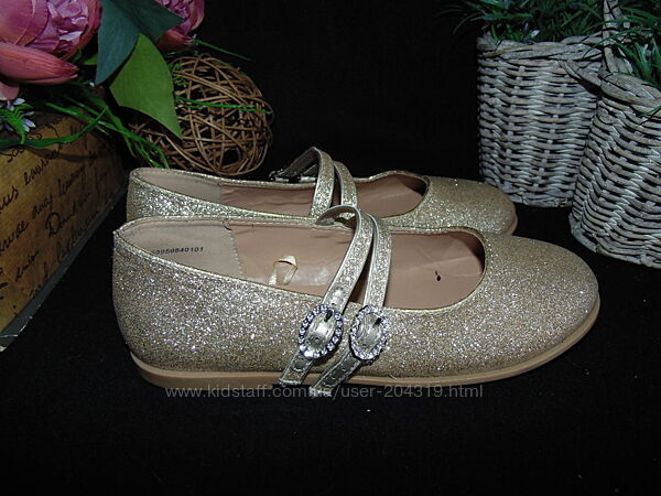 Бомбезні золотисті туфельки TU 34(2) размір, по устілці 22см.