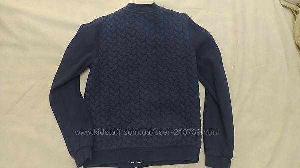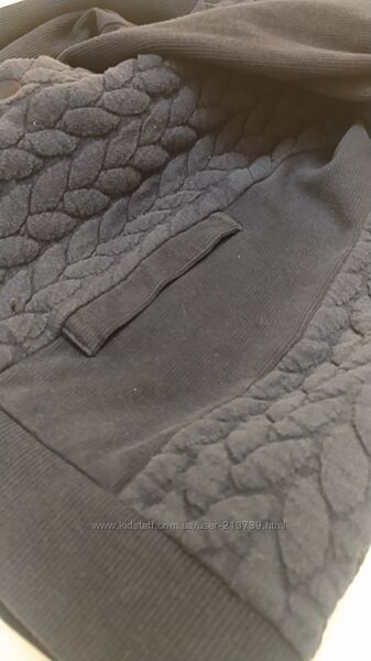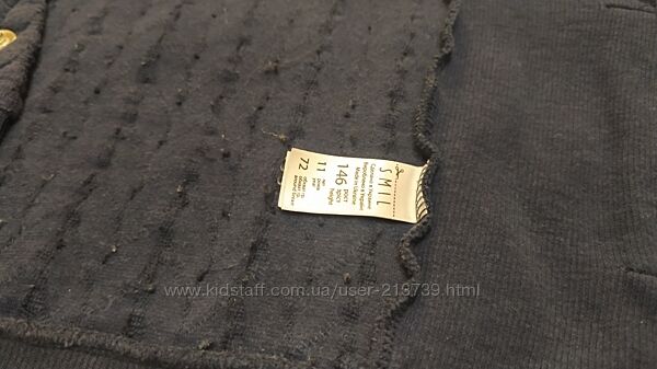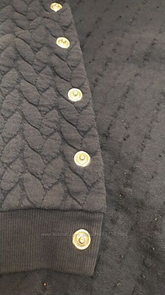 Кофта кардиган темно-синього кольору на кнопках, на 11 років, зріст 146 смТканина трикотаж, без начосу. Перед і спинка- об´ємна в´язка косичкою, рукава і боки - трикотаж рубчик.