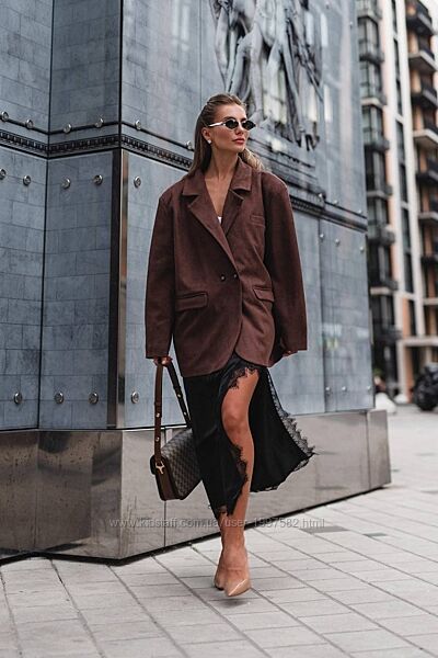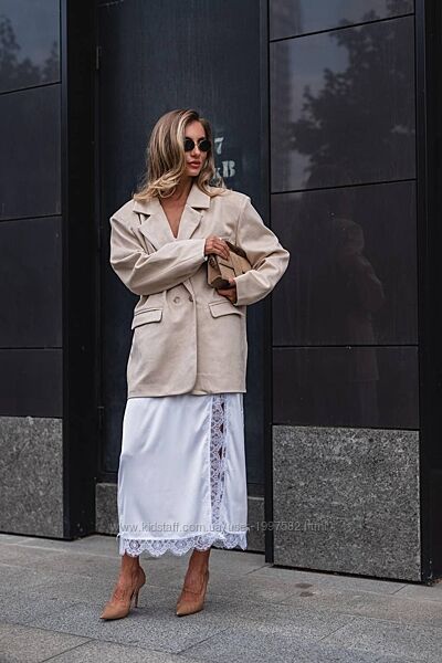 Подробное описание: Спідниця з розрізом на ніжці з мереживом шовкова з високою талією літня