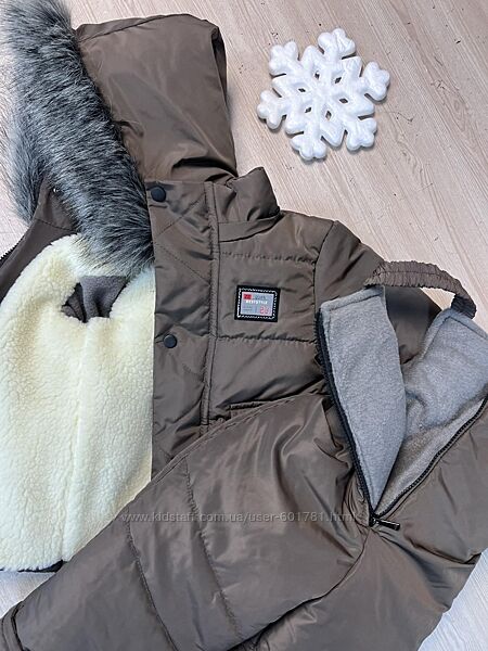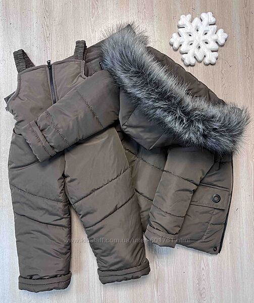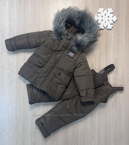 Зимовий костюм складається з куртки і напівкомбінезона. Тканина верху -плащівка, що забезпечує костюму високі водонепроникні та вітрозахисні властивості. Утеплювач - синетепон 200 забезпечує відмінний захист від холоду. У той же час костюм легкий і не сковує рухи дитини. Капюшон знімається, мєх шикарне штучне хутро. Рукава і штани є можливість відрегулювати по довжині. Трикотажні манженты в рукавах та захист у щтанишках не передбачені. Виробник Україна. Замеры рост 86 : длина куртки по спинке 42, длина рукава от плеча 36, ширина в плечах 30, ширина под рукавами 37 Шаговый шов 31, длина бокового шва 52 рост 92 : длина куртки по спинке 44, длина рукава от плеча 38, ширина в плечах 31, ширина под рукавами 38 Шаговый шов 36, длина бокового шва 54 рост 98 : длина куртки по спинке 46, длина рукава от плеча 40, ширина в плечах 32, ширина под рукавами 39 Шаговый шов 39, длина бокового шва 56 рост 104 : длина куртки по спинке 48, длина рукава от плеча 43, ширина в плечах 34, ширина под рукавами 40 Шаговый шов 41, длина бокового шва 58Другие объявления продавца