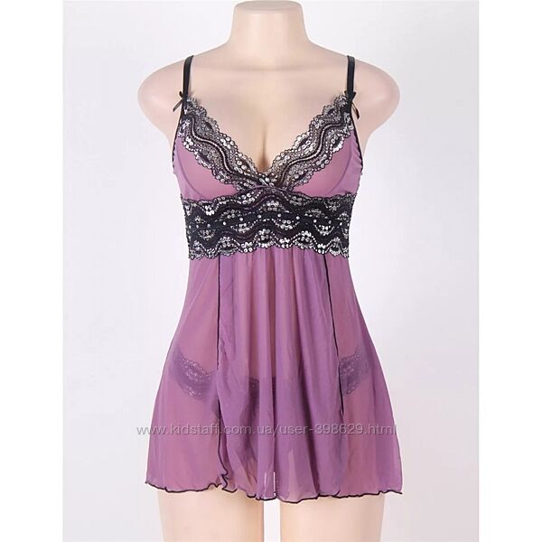 Сексуальный прозрачный пеньюар с кружевными вставками и разрезом сбоку. Бретельки регулируются. В комплекте идут стринги. Материал мягкий, эластичный, приятный к телу