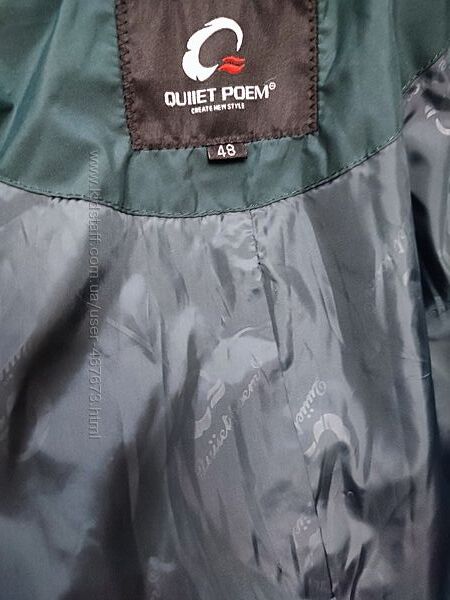 ✅✅Новий жіночий зимовий фабричний пуховик QUIIET POEM!⚠️ Розпродаж торгової точки! 👍👍👍Ціна значно нижче ринкової! Дуже гарний крій, по фігурі! Розмір 48. Утеплювач гарної плотності холлофайбер! Глибокий капюшон! Глибокі кармани! Низ рукава всередині на манжеті! Хутро на капюшоні знімається!ПОГ 53 см, довжина 84 см, ПОБ 56 см, плечі 43 см, довжина рукава 66 см. Якісна підкладка з логотипом бренду! Колір темно-зелений!