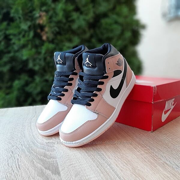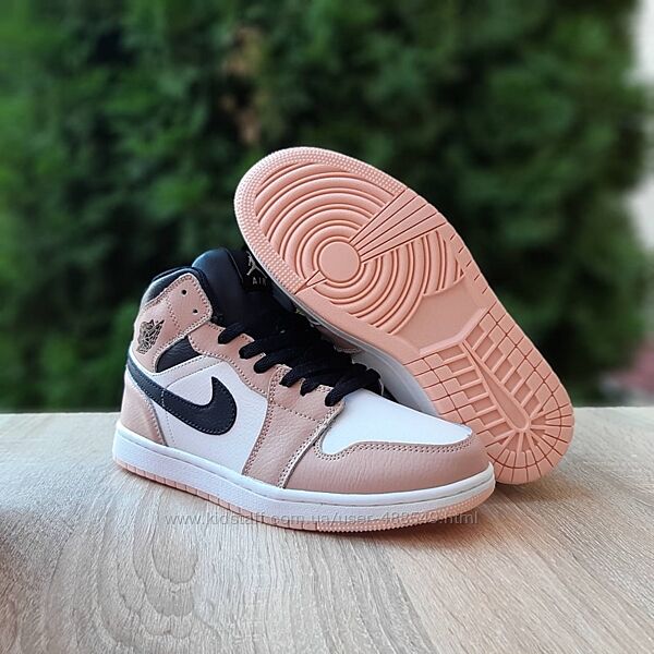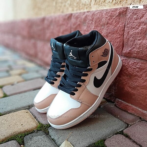 Подробное описание: Зимові жіночі кросівки з хутром Nike Air Jordan 1 високі білі з рожевим