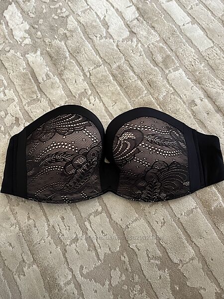 Wonderbra без бретелей - це справжнє диво у вигляді бюстгальтера. Завдяки запатентованій технології обхвату із силіконовими смужками, бюстгальтер надійно тримається на місці. Чашки з революційним ущільненням у формі руки, делікатно підіймають та підтримують груди.Стан ідеал, без дефектів