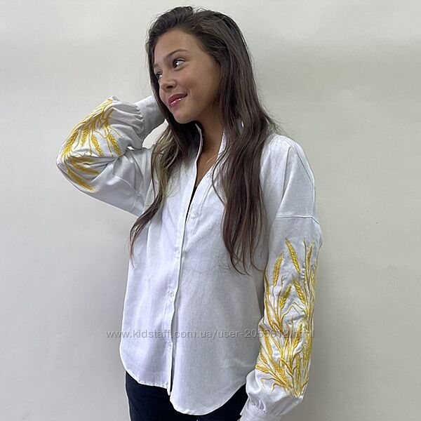 Дівчатка школярки мають бути стильними і сучасними.А в нашій сорочці прикрашеній вишитими колосками на рукавах це просто.