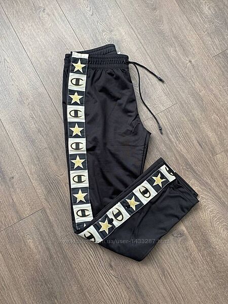 Верх - 100% поліестер (тягнуться мало) Мають 2 кишеньки по боках Донизу прямі Колір чорний На талії резинка + шнурочок З паперовою біркою Внизу штанини 4 кнопки ( є запасні)