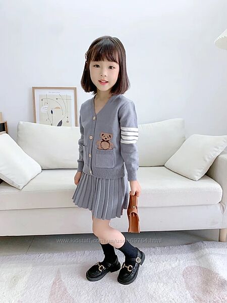 Вязаный костюм для девочки, фабричный Китай, Кофта и юбка