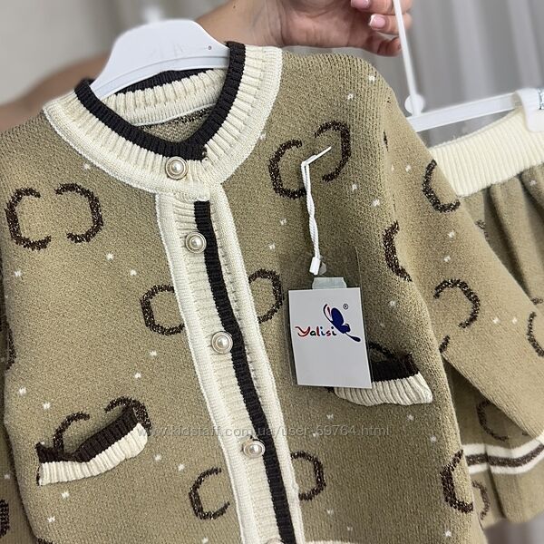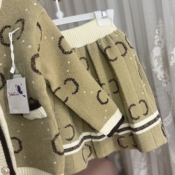 Теплый вязаный костюм для девочки, фабричный Китай, Кофта и юбка Цвет беж