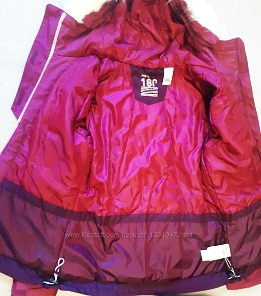 колір пурпурний с бургунді, капюшон фіксований, но хутро знімаєтьсярозмір м-зріст 170см