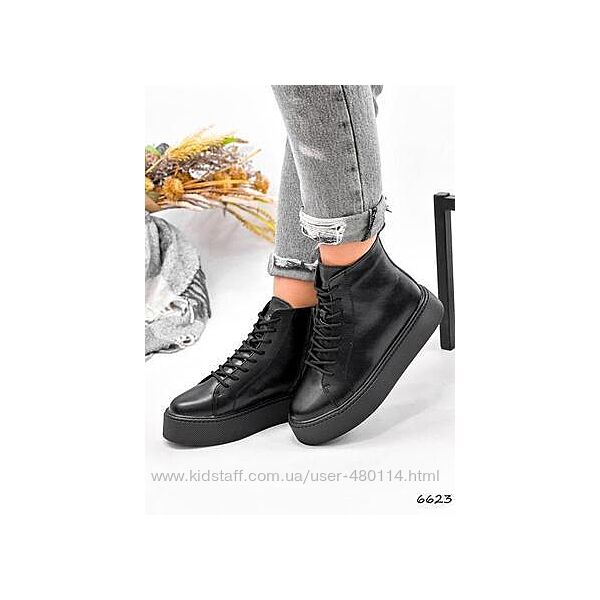 Натуральні шкіряні черевики на товстій підошві. Спереду є шнурівка, а збоку замок, що функціонує, легкі і зручні. Середина –штучне хутро
