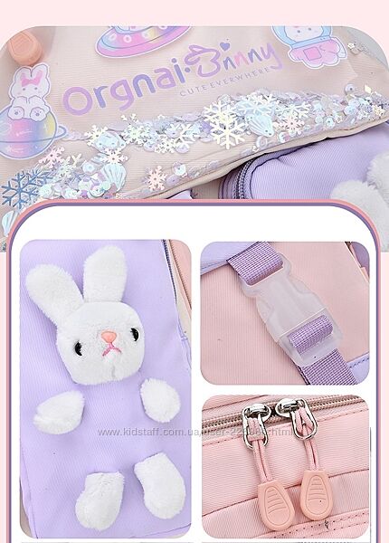 Підлітковий рюкзак для дівчаток середньої школи — стильний і сучасний рюкзак, нова модель цього року.Цей модний і якісний рюкзак точно виправдає очікування юної модниці. Шанувальниць мі-мішних образів потішить винятковий дизайн рюкзака з іграшкою-талісманом Кроликом у ніжних кольорах на вибір.