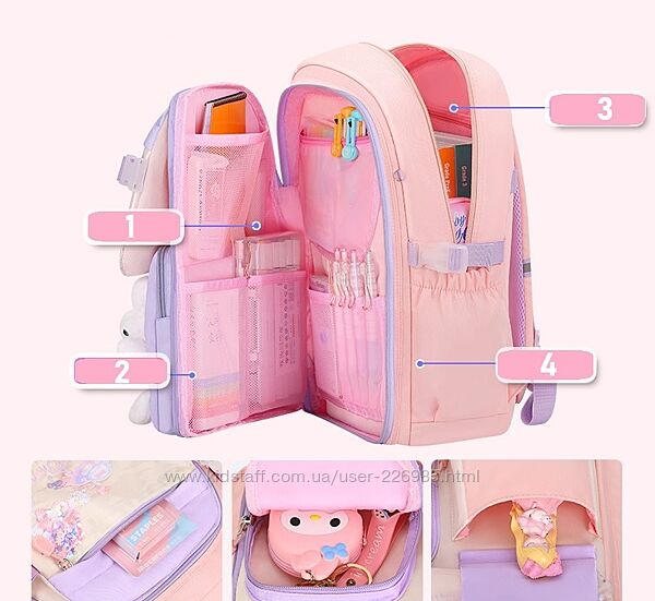 Подробное описание: Шкільний підлітковий водовідштовхувальний рюкзак для дівчинки 4-7 класів