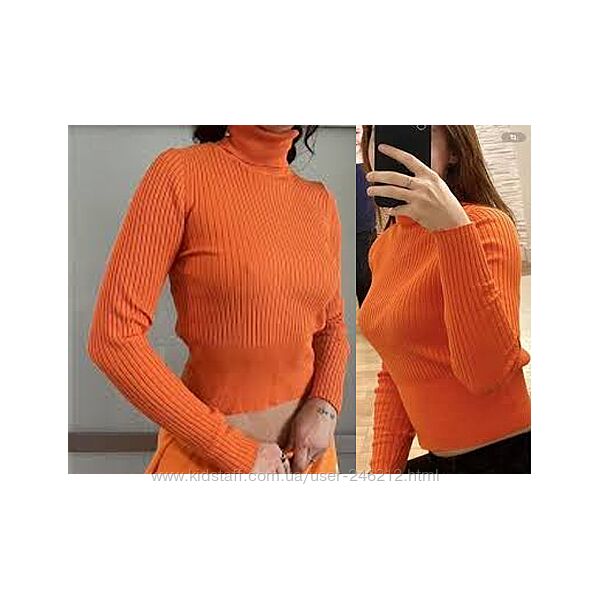 🍊Приятный гольф от Zara плотной вязки, заменит и свитер.Вязка в рубчик. Укороченный фасон,воротник стойка с длинными рукавами.