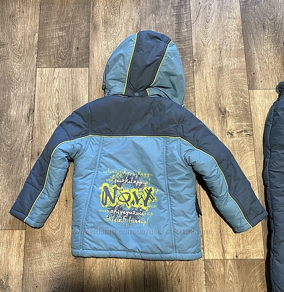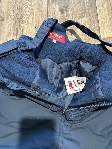 Раздельный комбинезон KIKO. Куртка и штаны. Указан рост 110 см. Очень теплый. Держит влагу. Состояние отличное. В носке был неполный сезон. Никаких проблем не имеет.Куртка