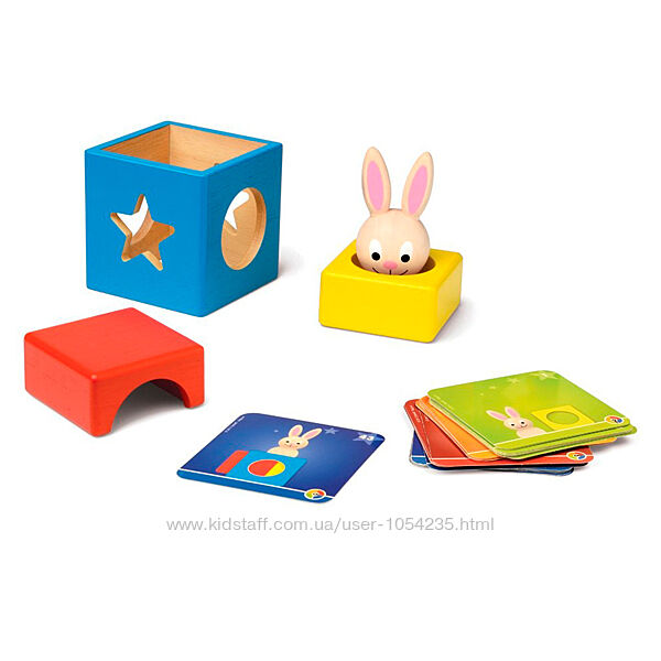 2. Пластиковая игра "Кролик Бу". Игра-головоломка для развития мелкой моторики, интеллектуальных способностей. В игре нужно усадить кролика в коробки (3 элемента головоломки) так, чтобы результат совпадал с изображением в задании. Вас ждет 60 картинок, которые малышу необходимо повторить, начиная с простого и заканчивая самым сложным уровнем. Начните с самых легких заданий. Главная задача в том, чтобы повторить изображение на карточках с помощью одного или нескольких блоков и милого кролика. У игры несколько уровней сложности: начинающий, ученик, эксперт. мастер. Комплектация: 3 пластиковых блока (красный, желтый и синий),кролик, 60 карточек с заданиями. Возрастная категория 2+. Цена: 650 грн.