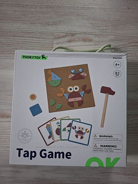 5. Деревянный набор Tooky Toy аппликация с молоточком. Веселая и захватывающая игра, которая даст вашему малышу возможность поиграть с молотком и забить картинку на специальном поле. Фантазируйте, играйте и тренируйте руки. Набор состоит из 82 деталей разной формы. На пробковую доску необходимо положить игровые элементы, скрепить гвоздиками и прибить молоточком - таким образом создается картинка. Развивается мелкая моторика, точные движения, зрительно-моторная координация. Возрастная категория 4+. Цена: 600 грн.
