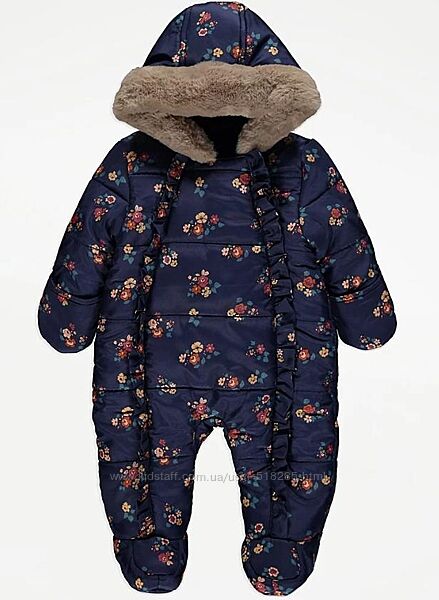 комбінезон на 9 -12 м . пише до 11 кг ,але як на мене то трохи маломірить і може з легкістю підійти від 7 -10-11міс( залежить від дитинки) англійського бренду George . В ідеальному стані , носили недовго ( виросли дуже швидко ,до половини на флісі. До -10 ,ручки закриваються . Ніжки закриті.