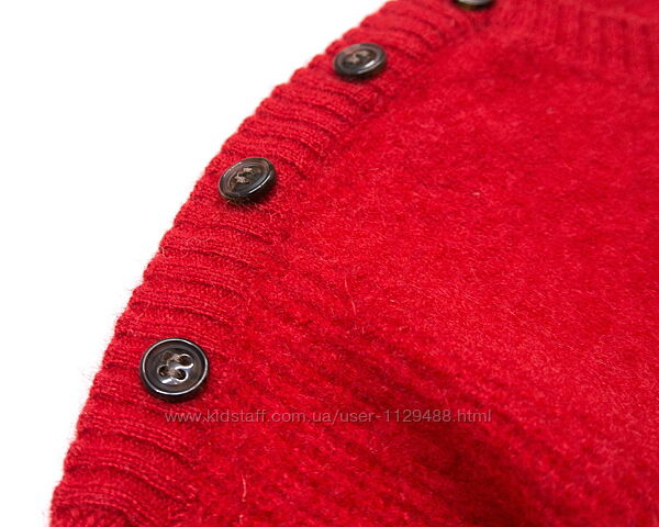 Эффектный, насыщенного густого красного цвета, линия плеча спущена, по плечам декоративные пуговки, крой свободный, спинка длиннее переда, края закругленные. Очень мягкий и теплый, вязка плотная, кашемир толстенький, очень качественный.