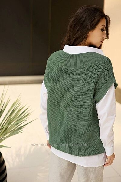 Інші светри та кофти нашого магазину, Ви можете переглянути за посиланням: https://www.kidstaff.com.ua/user-anno-1997582/sect...Тренд цього сезону – в´язаний жилет. Відмінно комбінується з сорочкою та гольфом. Фасон прямий, вільний. Горловина має V-подібний виріз. Матеріал – в´язка.