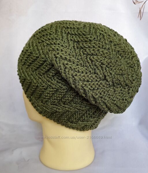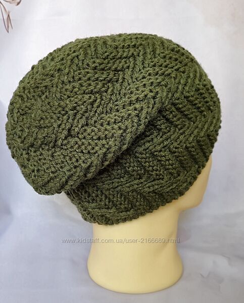 Стильная мужская шапка бини связана спицами вручную объёмной ручной вязкой. Всё соответствует европейским стандартам.