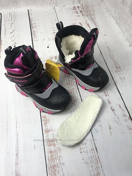 Подробное описание: Чобітки дутики дитячі на дівчинку Clibee Чорно-рожевий 1018