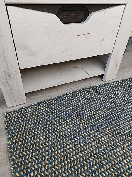 Тепленький килимок, 90% вовна, 10% ПА. Товстенький, вашим ніжкам або котику чи собачці буде тепло. Розмір 87×63 см Можна прати в машинці на делікатному режимі. Вага 850г.