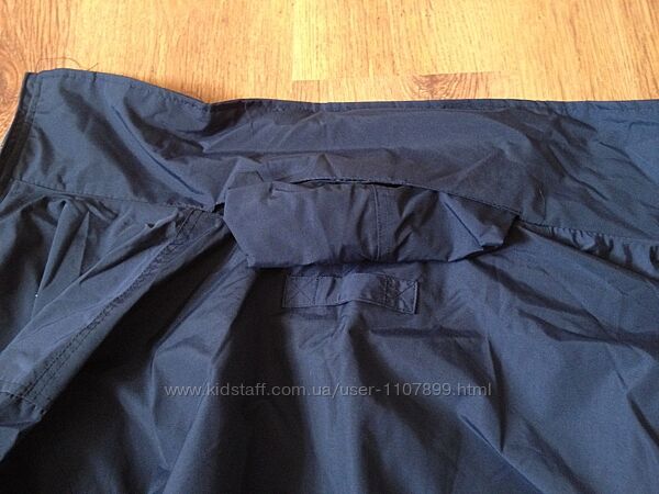Спинка у куртки немного длиннее переда, есть утяжка.Застежка на молнию, закрывается планкой на липучках, внизу застегивается на кнопку. Застежка молния до конца воротника- стойки. Воротник застегивается дополнительно на липучку, есть утяжка. Есть капюшон, прячется в воротник, пристегивается на молнию. Рукава на тканевой подкладке, манжет на липучках,2 косых наружных боковых кармана на молнии, закрыты планками, есть внутренний карман застегивающийся на молнию.