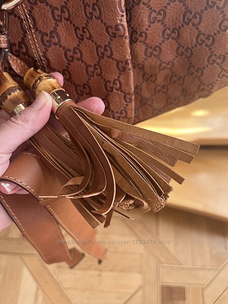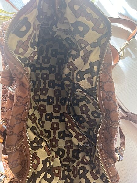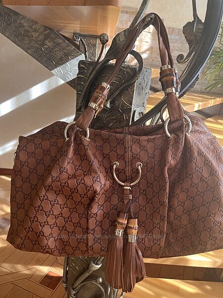 Неймовірно гарна сумка, з легендарним коричневим полотном .Бамбукові деталі на лямках і китицях.