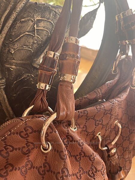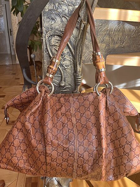 Подробное описание: большая сумка Gucci женская коричневая кожаная бамбук