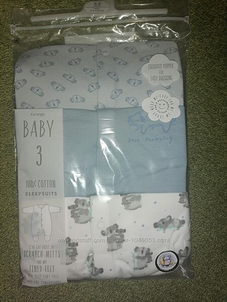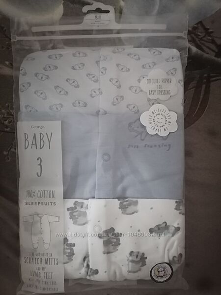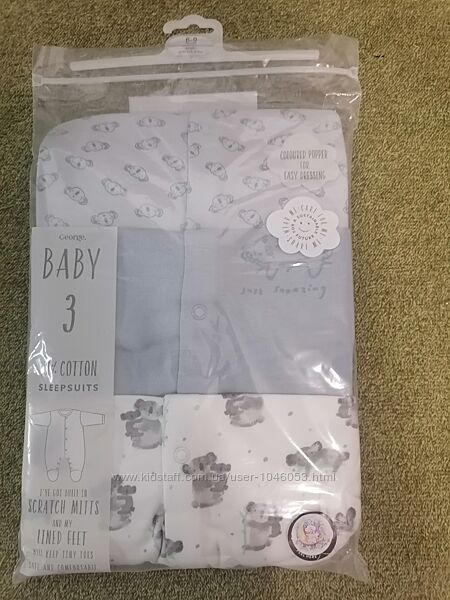 Набор, комплект слипов, человечки George 6-9 мес
