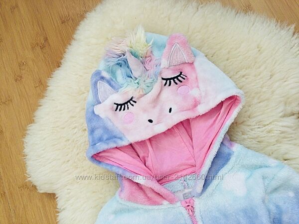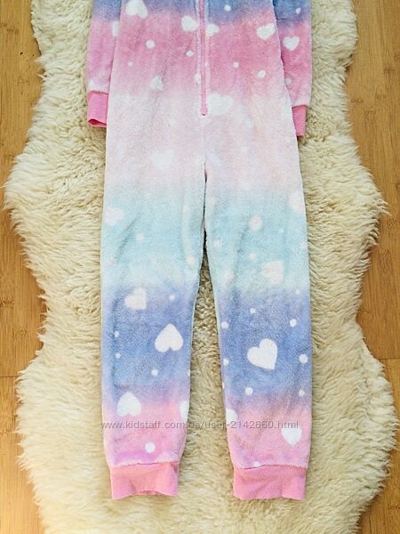 6-7 років, 122 зріст F&F флісовий пухнастий кігурумі, піжама райдужний Одноріг з очками і рогом на капюшоні. Супер - теплий, м"якенький комбінезон на манжетах.Стан нового!