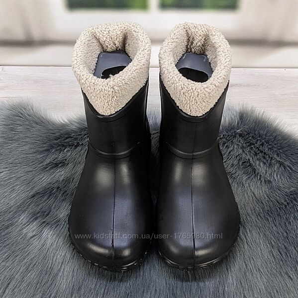 Сапоги женские пена черные с меховой вставкой Gipanis 4618Демисезонные женские сапоги, литые из легкого, непромокаемого материала ЕВА. Внутри чулок из короткого искусственного меха, вынимаетсяВысота сапога от подошвы - 16-17,5 см
